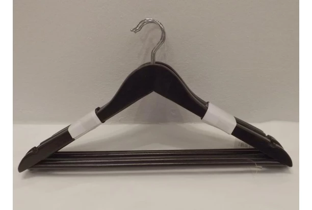 Sada 5 kusů klasických ramínek na oblečení. Dřevěná konstrukce v černé barvě.