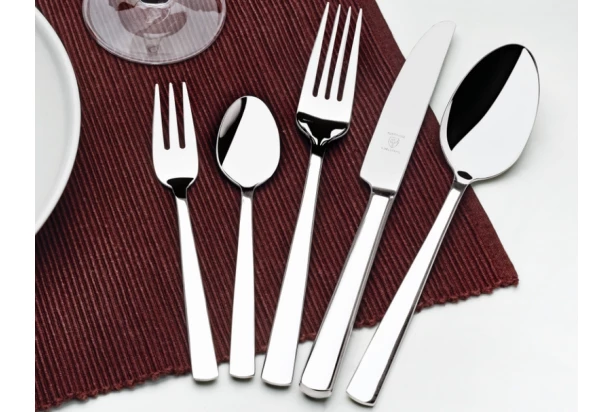 Vysoce kvalitní 30-dílná sada příborů z ušlechtilé nerezové oceli. Hladké provedení povrchu a zaoblené tvary se univerzálně hodí do jakékoliv jídelny.
