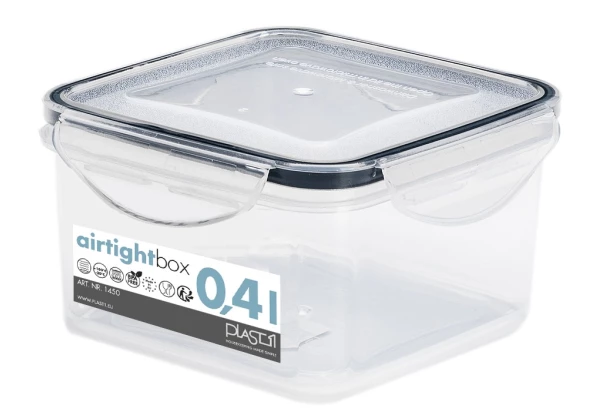 Hranatá plastová dóza na potraviny o vnitřním objemu 0,4 litru je užitečným pomocníkem při uchovávání a přenášení potravin. Vzduchotěsné víko zajistí delší trvanlivost a čerstvost skladovaných potravin.