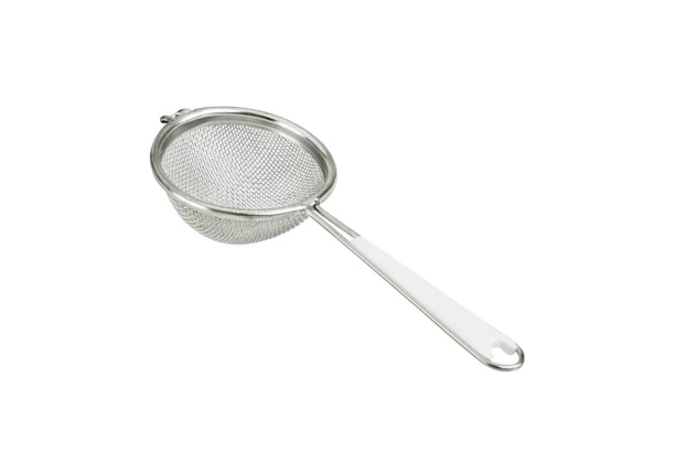 Praktické kuchyňské sítko z kombinace kovu a plastu o průměru 10 cm je praktickým doplňkem každé kuchyně.