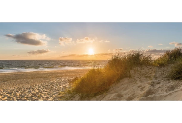 Panoramatický obraz tištěný na plátně o rozměru 140×60 cm vnese do interiéru hřejivou atmosféru letního podvečera a nekonečný klid mořské hladiny.