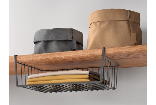 Praktický skříňový koš pro prostorově úsporné uložení domácích potřeb. Ať už jej zavěsíte v kuchyni, ložnici či koupelně, získáte další úložný prostor pro Vaše věci. Ideální na talíře, ručníky, košile apod. Díky exkluzivní povrchové úpravě Metaltex TouchTherm je koš odolný proti korozi, nárazu a je antistatický. Rozměr 40×14×26 cm.