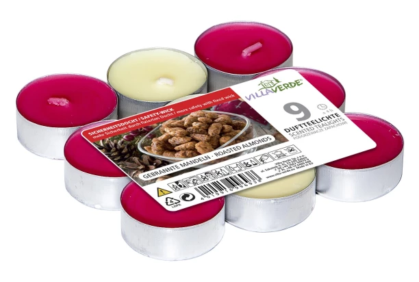 Sada obsahuje 9 čajových vonných svíček ve třech barevných odstínech, které navodí relaxační a romantickou atmosféru. Čajové svíčky s vůní po pražených mandlích si oblíbíte hlavně během Vánoc.