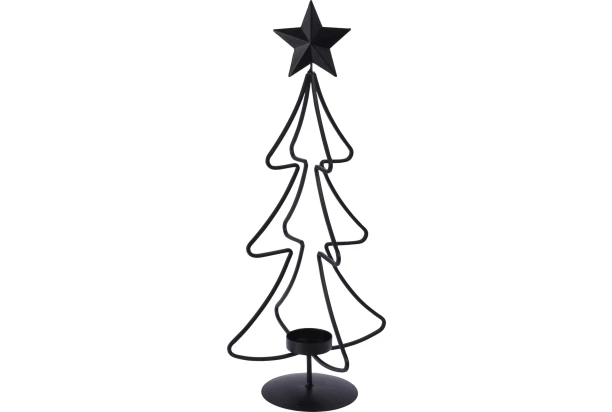 Vánoční kovový svícen ve tvaru stromečku s hvězdou. Svícen na čajovou svíčku má výšku cca 45 cm.