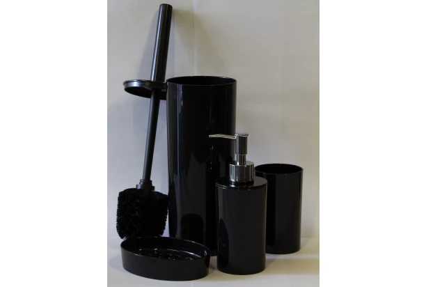 4-dílná praktická koupelnová sada vyrobena z černého plastu se hodí se do každé koupelny.