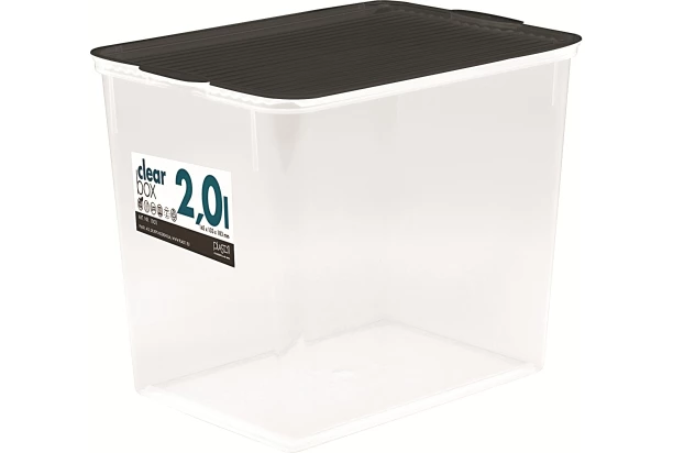 Průhledný úložný box s víkem se hodí na jakékoli drobnosti, které potřebujete mít po ruce. Objem tohoto boxu jsou 2 litry.