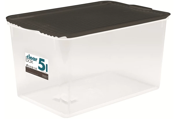 Průhledný úložný box s víkem se hodí na jakékoli drobnosti, které potřebujete mít po ruce. Objem tohoto boxu je 5 litrů.