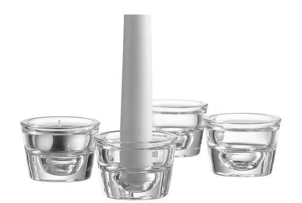 Skleněný svícen o průměru 6 cm je vhodný jak pro kuželové svíčky, tak pro čajové svíčky. Svícen v jednoduchém designu společně s hořící svíčkou vykouzlí útulnou atmosféru a přinese teplo do každého domova.