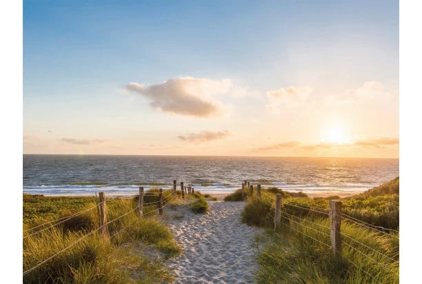 Obraz tištěný na plátně o rozměru 61×46 cm oživí každou stěnu a vnese do vašeho domova příjemnou a relaxační atmosféru. Motiv písčité cesty vedoucí k mořské pláži při západu slunce působí uklidňujícím dojmem a dodá místnosti útulnost i letní pohodu.
