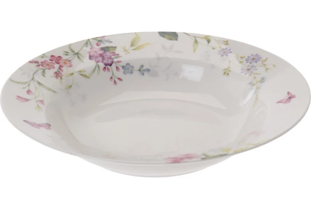 Hluboký jídelní talíř s půvabným motivem připomínající rozkvetlou zahradu plnou krásných květin a motýlků je ideální na servírování polévek nebo těstovin. Průměr 23 cm.