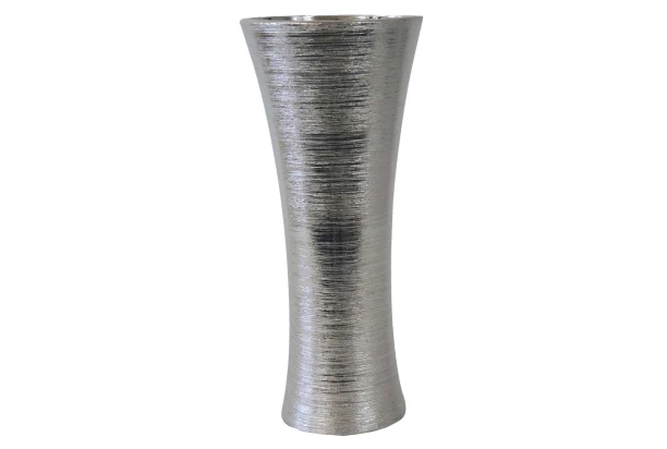 Moderní stříbrná váza s efektem škrábaného laku a širokým hrdlem dodá Vaší domácnosti styl a nádech luxusu. Váza zaujme svým elegantním tvarem a vyniknou v ní umělé i živé květiny. Výška 35 cm.