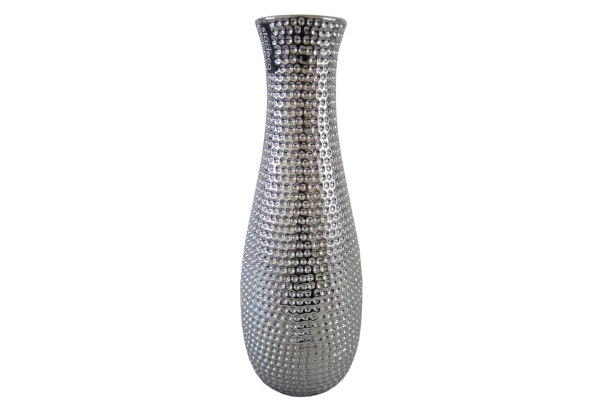 Moderní stříbrná váza s tepaným vzhledem dodá Vaší domácnosti styl a nádech luxusu. Váza zaujme svým elegantním tvarem a společně s květinami či dekoracemi se stane skutečným poutačem. Výška 30 cm.