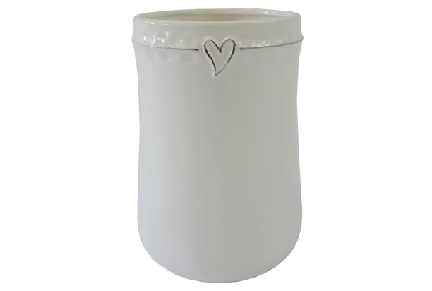 Jednoduchá keramická bílá váza se srdíčkem o výšce 23 cm zapadne do každé domácnosti a bude skvěle ladit s řadou různých stylů vybavení a nábytku.