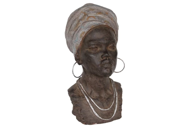 Velká socha v podobě hlavy africké ženy se stane dominantou Vaší domácnosti. Stylová busta krásně ozdobí komodu nebo regál a upoutá pozornost. Dekorace je vysoká 47 cm.