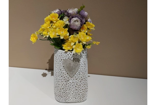 Dekorativní váza z cementu s motivem srdce v šedé barvě společně s rostlinou vytvoří dokonale romantickou a útulnou atmosféru. Výška 20 cm.