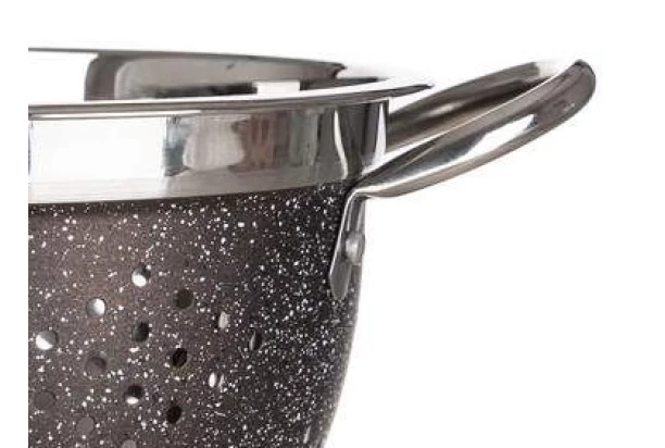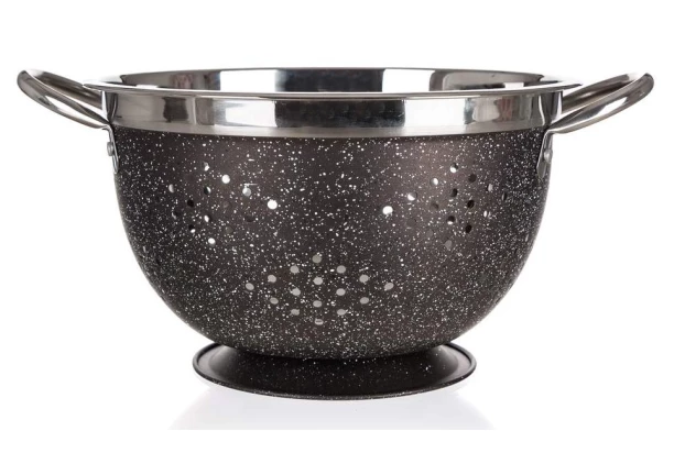 Nerezový cedník v hnědo-antracitové barvě s vnějším granitovým povrchem je nepostradatelným pomocníkem v kuchyni, který usnadní přípravu pokrmů. Praktický cedník pro oplachování zeleniny, cezení těstovin i mnoha dalších jídel. Průměr 25,8 cm.