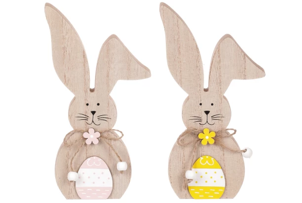 Velikonoční dekorace Dřevěný zajíček, mix 2 barev