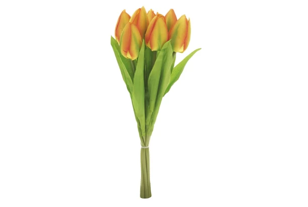Krásně aranžovaná umělá kytice žlutých tulipánů. Puget vypadá elegantně, ozdobí každý interiér a není potřeba ani zalévání.