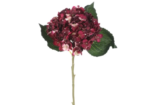 Umělá květina hortenzie s bordó květy skvěle doplní Vaše stávající květinové aranžmá. Hortenzie ve váze bude vypadat krásně po celý rok. Výška 50 cm.