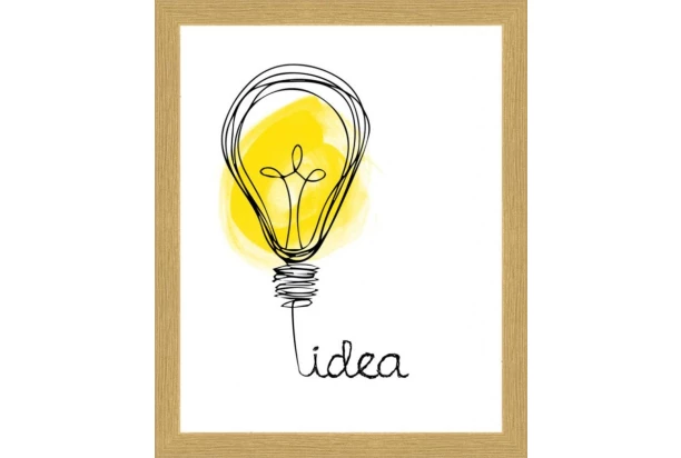 Obraz v dřevěném rámu zaujme svým jednoduchým motivem Idea v podobě žárovky na bílém pozadí. Obraz dokonale doladí atmosféru každé místnosti. Kombinace s dalšími obrazy skandinávského stylu vytvoří na stěně originální koláž. Rozměr 20×25 cm.