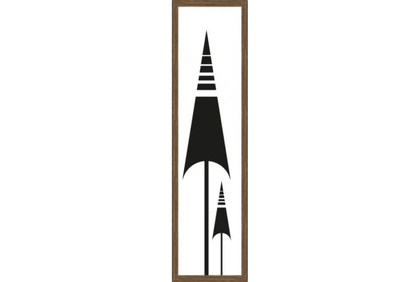 Obraz v dřevěném rámu zaujme moderní grafikou s geometrickým motivem v Nordic stylu. Černé trojúhelníky připomínající stromy na bílém pozadí dokonale doplní jakýkoli interiér. Kombinace s dalšími obrazy skandinávského stylu vytvoří na stěně originální koláž. Rozměr 15×60 cm.