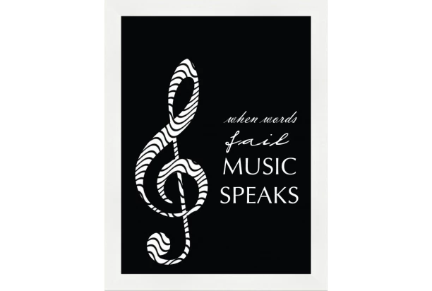 Obraz v dřevěném rámu zaujme houslovým klíčem a nápisem When words fail, music speaks. Obraz v Nordic stylu si zamiluje každý milovník hudby. Kombinace s dalšími obrazy skandinávského stylu vytvoří na stěně originální koláž. Rozměr 18×24 cm.