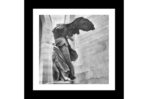 Zarámovaný obraz v dřevěném černém rámu s motivem sochy bohyně vítězství Níké Samothrácká je vyroben technikou fototisku. Jednoduché, ale elegantní černobílé provedení obrazu dodá Vašemu interiéru výjimečnou atmosféru. Rozměr 20×20 cm.
