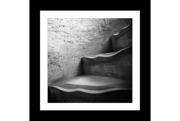 Zarámovaný obraz v dřevěném černém rámu s motivem schodů je vyroben technikou fototisku. Jednoduché, ale elegantní černobílé provedení obrazu dodá Vašemu interiéru výjimečnou atmosféru. Rozměr 20×20 cm.