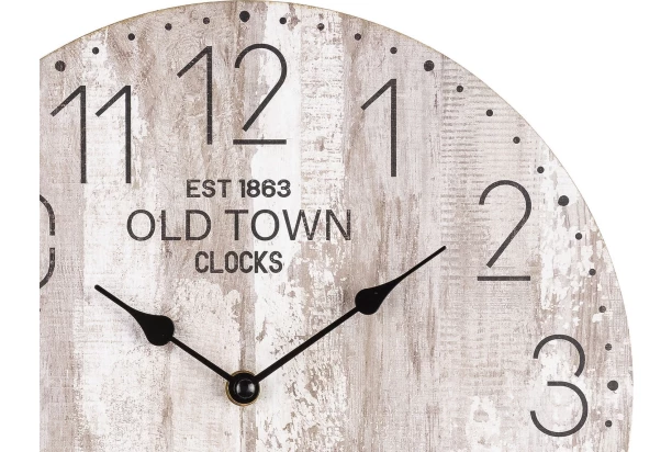 Nástěnné dřevěné hodiny ve stylovém provedení s nápisem Old Town perfektně dotvoří celkový dojem každé místnosti. Průměr 30 cm.