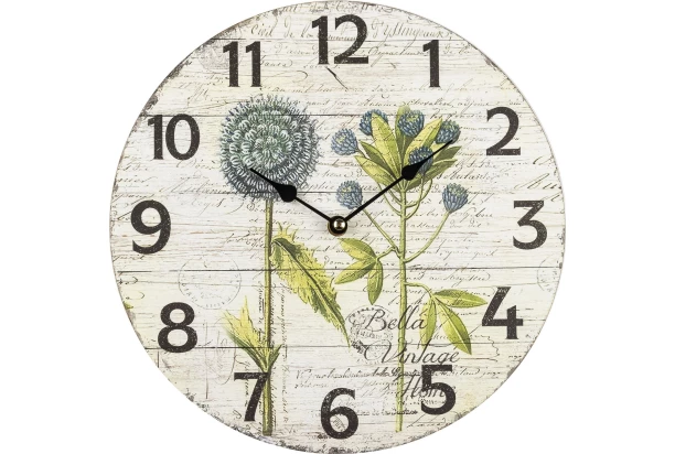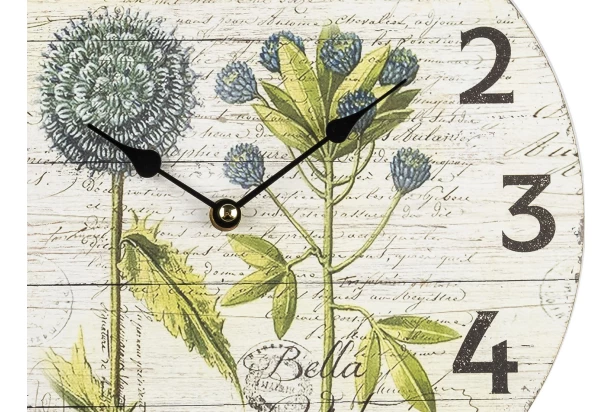 Nástěnné dřevěné hodiny Bella vintage home perfektně dotvoří celkový dojem každé místnosti. Krásný motiv květiny dodává hodinám přitažlivý vzhled. Průměr 30 cm.
