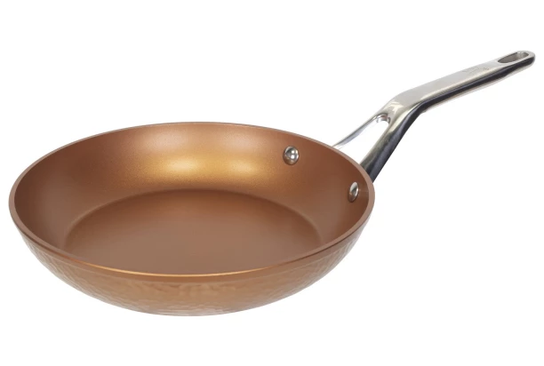 Vysoce kvalitní pánev s nepřilnavým povrchem vyrobená z kovaného hliníku v měděné barvě nabízí dostatek prostoru pro smažení a vaření všech druhů potravin. Praktická nerezová a tepelně odolná rukojeť usnadňuje používání při vaření. Průměr 24 cm.