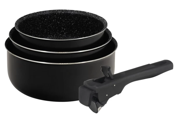 Fantastická 4-dílná sada pánví v černé barvě je ideálním všestranným pomocníkem pro moderní kuchyni. Díky odnímatelné rukojeti se pánve snadno skladují, aniž by zabíraly mnoho místa. Pánve jsou vhodné pro všechny typy sporáků, včetně indukce. Průměr pánví je 16, 18 a 20 cm.