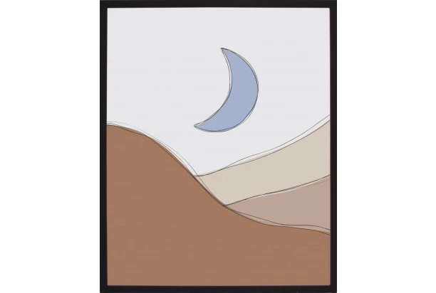 Obraz v dřevěném černém rámu s nádechem skandinávského a boho stylu v podobě minimalistické moderní malby s motivem krajiny a měsíce evokuje pocit pohody a umožní Vám vytvořit útulný domov. Nástěnná umělecká dekorace v příjemných barvách se skvěle hodí jako doplněk do obývacího pokoje, ložnice nebo domácí pracovny. Rozměr 40×50 cm.