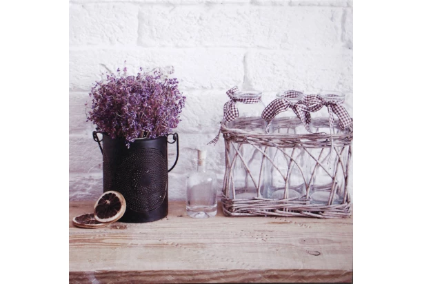 Elegantní obraz tištěný na plátně s provensálským motivem vnese do interiéru klidnou a příjemnou atmosféru. Levandulové zátiší potěší všechny milovníky slunného francouzského venkova a skvěle oživí prázdnou stěnu. Rozměr 50×50 cm.