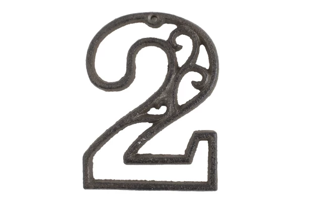 Litinové číslo pro Váš dům, chatu nebo jakoukoliv jinou budovu. Klasické číslo 2 z litiny v hnědé barvě je nejen praktické pro označení Vašeho domu, ale díky ozdobnému vzhledu navíc dodá budově stylový šmrnc. Domovní číslice se může také použít jako dekorace do interiéru.
