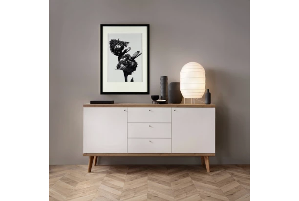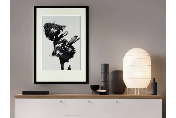 Obraz v dřevěném černém rámu s bílou paspartou má jednoduchý botanický motiv. V černobílém obrazu se nachází krása, která okouzlí všechny milovníky moderního bydlení. Rozměr 35×50 cm.