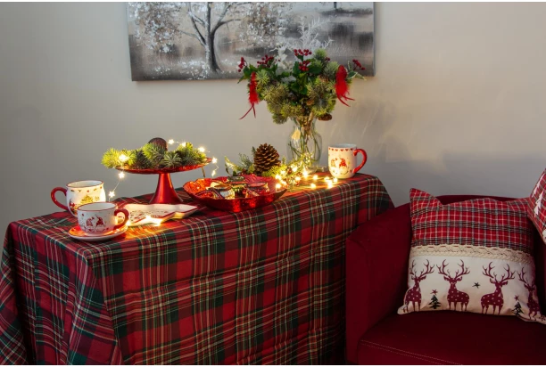 Servírovací skleněný podnos na dort a cukroví s elegantním vánočním motivem v červené barvě dozdobí prostřený stůl a perfektně doladí sváteční atmosféru. Na tomto talíři také skvěle vypadá ovoce, klobásy, sýry a další dobroty. Ideální na Vánoce. Průměr 28 cm.