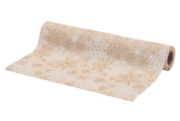 Krásná dekorační látka o rozměru 250×28 cm s vánočním vzorem sněhových vloček v pískové barvě se hodí jako běhoun na Váš sváteční stůl. Látkou také můžete ozdobit ostatní nábytek a vykouzlit tak slavnostní atmosféru v každé místnosti. Vhodné i pro balení dárků.