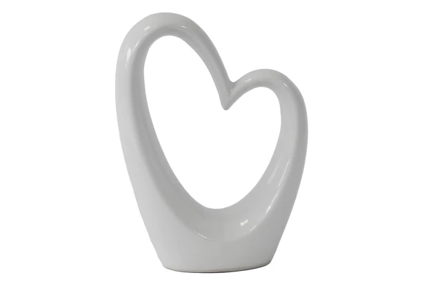 Keramická dekorace s lesklým vzhledem tvoří obrys bílého srdce. Dekorativní soška se stane poutačem v každé místnosti. Výška 24,5 cm.