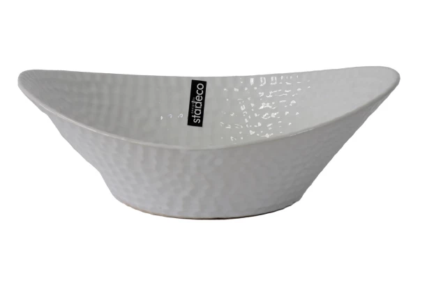 Elegantní keramická mísa s lesklým strukturovaným povrchem v bílé barvě působí moderně a lze ji snadno kombinovat s dalšími dekorativními prvky. Miska bude skvěle vypadat v kuchyni, jídelně nebo třeba v obývacím pokoji. Výška 10 cm.