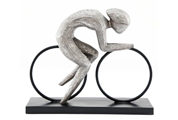 Působivá dekorační soška cyklista z resinu v antickém stříbrném provedení se stane fantastickou ozdobou interiéru. Atraktivní bytový doplněk bude slušet každé poličce nebo odkládacímu stolku. Ideální také jako dárek pro milovníky cyklistiky.
