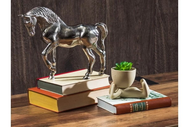 Kovová dekorace koně se stříbrným efektem se stane fantastickou ozdobou Vašeho interiéru, kterému dodá nádech luxusu.