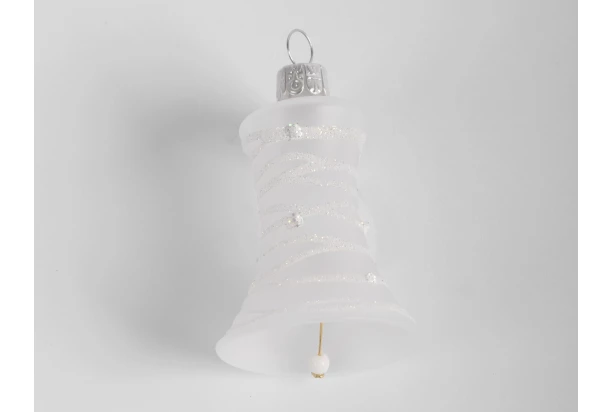 Vánoční ozdoba skleněný zvonek, bílý s vlnkami