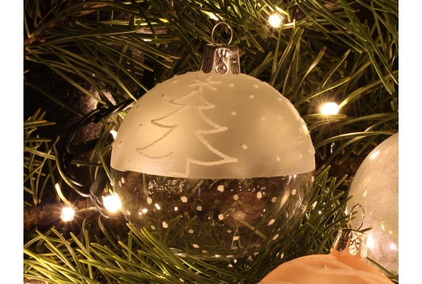 | Název | Koule 7 cm, transparentní se stromky, sklo |