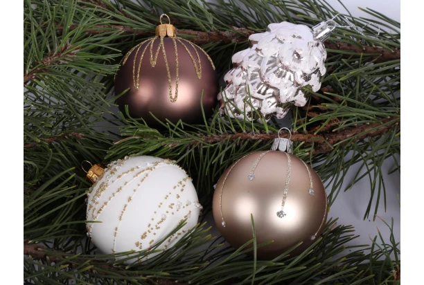 | Název | Koule s korálky, bílé sklo, 7 cm |