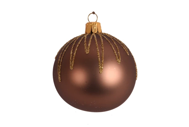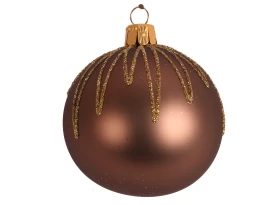 Hnědá vánoční ozdoba ve tvaru koule o průměru 6 cm je vyrobena ze skla a je ozdobena třpytivým vzorem. Skvělá dekorace pro Váš vánoční stromeček i stůl.
