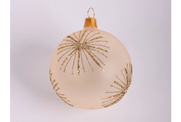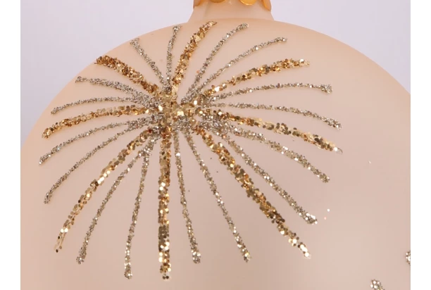Vánoční ozdoba ve tvaru koule o průměru 7 cm je vyrobena ze skla v šampaňské barvě a je ozdobena třpytivými glitry, které vytváří vzor připomínající prskavku. Vánoční koule skvěle navodí sváteční atmosféru.