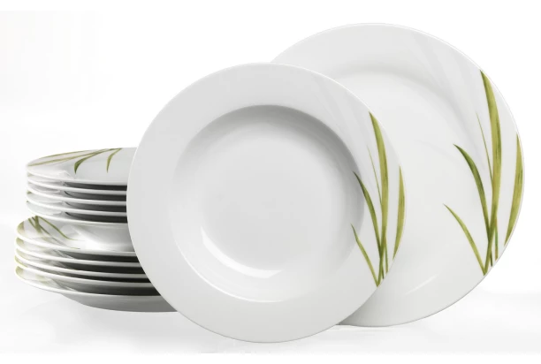 12-dílný jídelní servis s jednoduchým přírodním motivem trávy působí harmonicky a zaujme pozornost na jídelním stole. Nádobí je vyrobeno z vysoce kvalitního porcelánu a dokonale zapadne do každé kuchyně. Prostřete stůl a servírujte až pro 6 osob.