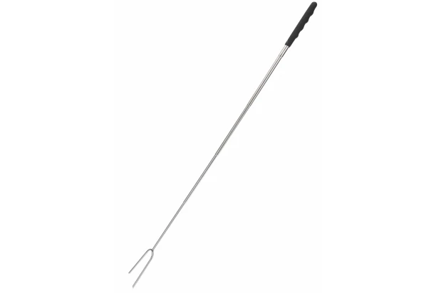 Praktická grilovací vidlička z nerezové oceli s výsuvnou teleskopickou černou rukojetí, kterou lze prodloužit až do 72 cm. BBQ vidlice je ideální pro otáčení a manipulaci s masem při grilování.