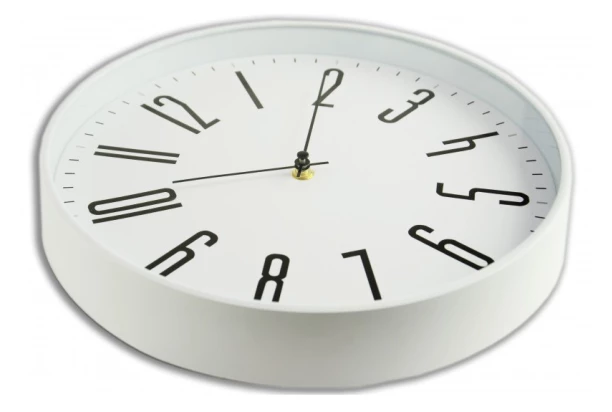 Nástěnné analogové hodiny v klasickém bílém provedení s černým ciferníkem se stanou praktickým doplňkem každé domácnosti. Průměr 30 cm.